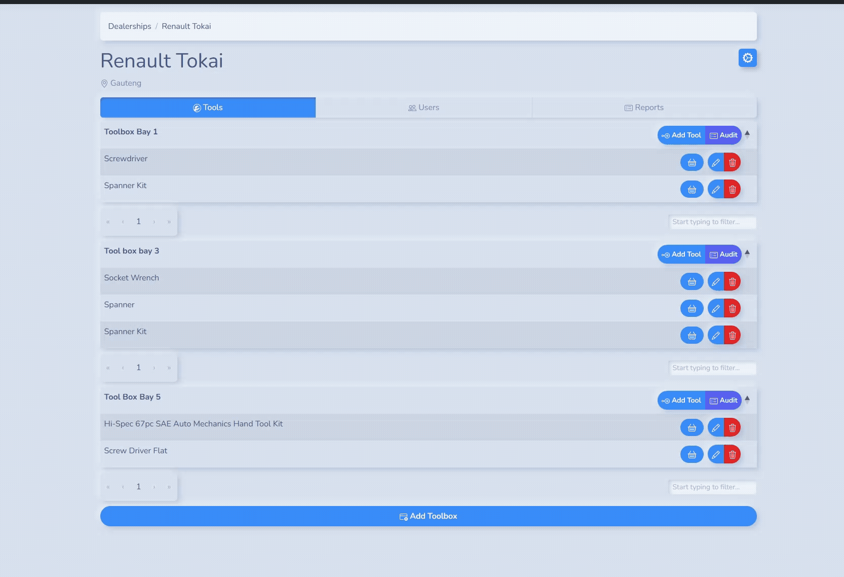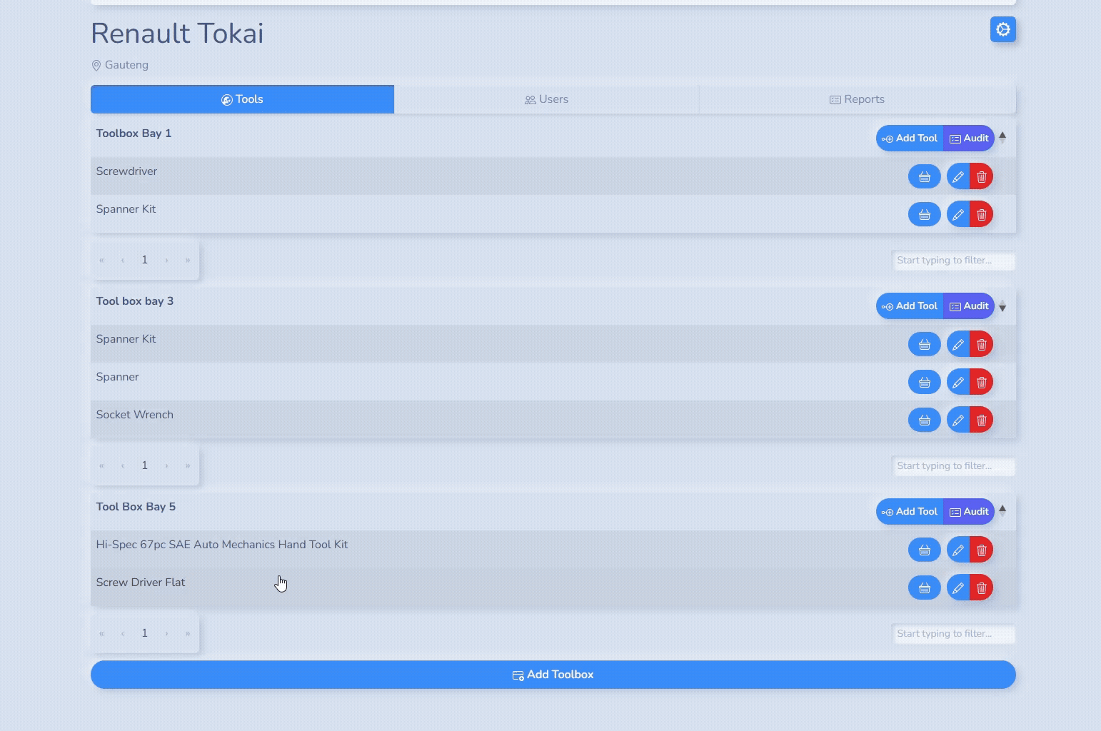 Got a new toolbox or setting up a full tool room? Add it in seconds! Just click the “Add Toolbox” button, give it a name, and start adding your tools right away.